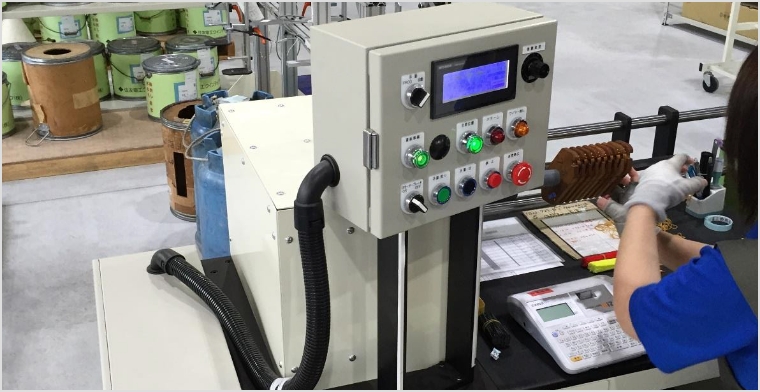 手巻き・自動巻きの両対応に加え、整形・ワニス処理・熱乾燥など、あらゆる工程を自社設備で一貫対応可能です。また、耐圧・回転・トルク・着磁などの専用試験機を用いて、厳格な品質確認を行い、安心・安全な製品をお客様へ届けています。